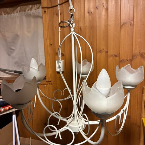 Myydään kattovalaisin. Varjostimet valkoista lasia.