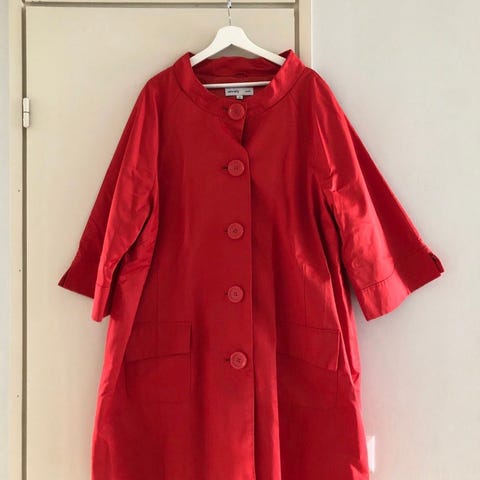Punainen Mikrofleece takki. Muuten on hyvä kuntoinen mutta vetoketju on rikki. Koko merkitä 62, mutta vastaa ehkä kokoa 56 lähimmin.