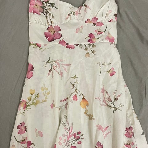 Hyvässä kunnossa pidempi kukkamekko. Vähäiseksi jäänyt käyttö. Napit etuosassa. Mukavaa kevyttä materiaalia. Viskoosia 100% lapussa merkintä.