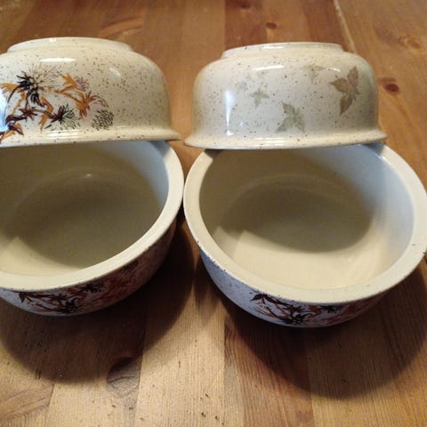 Muro kulhoja, punaiseksi pinnoitettua lasia, 12cm, 5kpl, 3€ yhteensä.