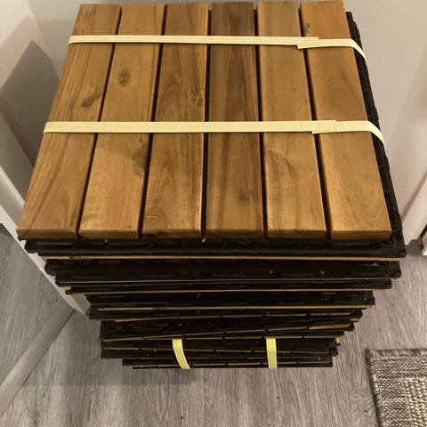 Myydään ikea runnen vaaleanharmaat parvekelaatat 62 kpl. Kahdessa laatassa pienet halkeamat, katso kuvat. Muut laatat ehjät ja siistit. Olleet käytössä lasitetulla parvekkeella.