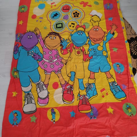 Suloinen muppets pussilakana 80-luvulta. Pari pientä tahraa, muuten erinomainen kunto. Aikuisten koko 138x195cm