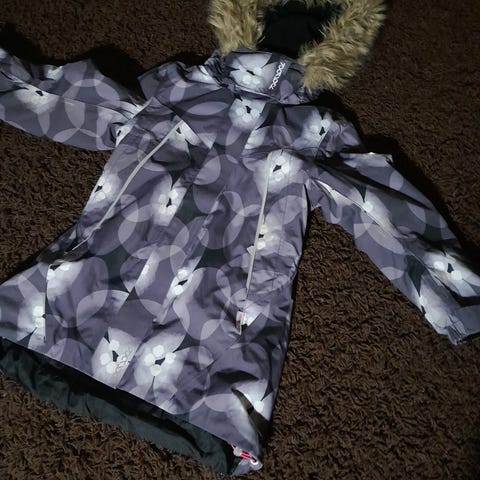 Reiman siisti toppatakki. Yhdellä lapsella ollut. Aivan pienitä kulumaa takahelmassa.