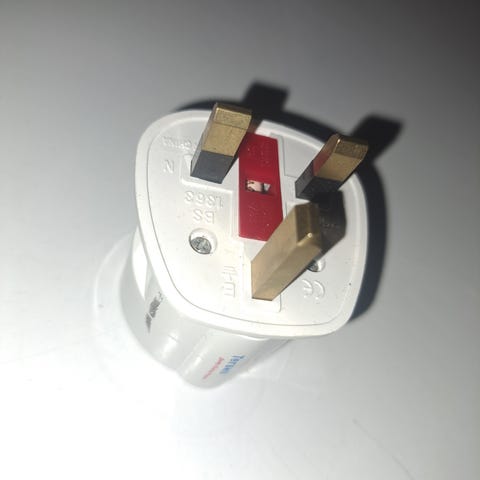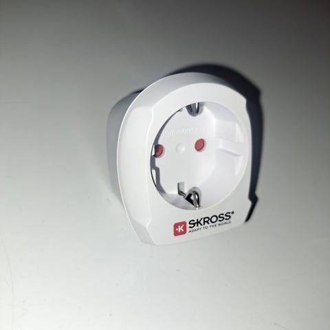 Matkasovitin/matka-adapteri Englanti (Europe to UK) ja Etelä-Euroopan sovitin (South European Italy, Spain, Greece, France). Maadoittamattomille pistorasioille.