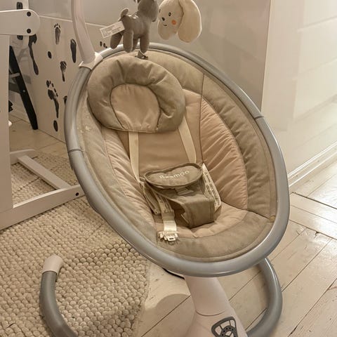 Kinderkraft vaalea sitteri. Vasemmalla vyön vieressä haalea tahra, joka ei lähtenyt pesussa, muuten hyvässä kunnossa.