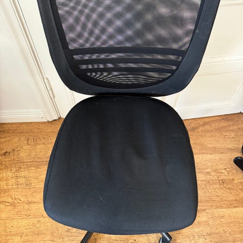 Toimistotuoli irrotettavilla ja pestävillä valkoisilla kangaspäällysteillä.