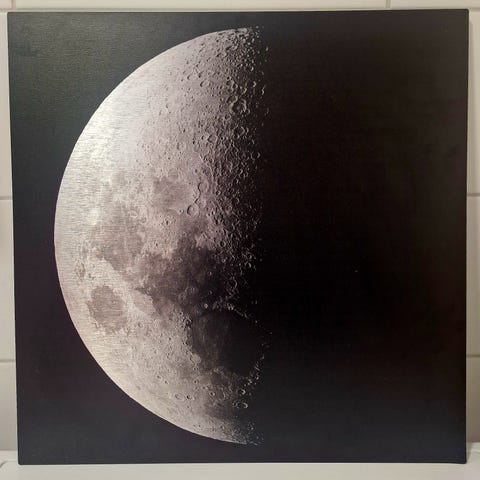Söpö kuu - kuvioinen julistetaulu lastenhuoneeseen, valkoiset kehykset.