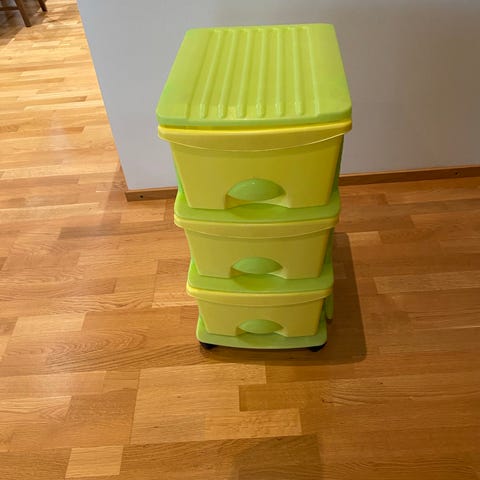 IKEA puiset lelukärryt, joissa on pyörät ja vetonaru. Käytetty lastenhuonekaluna lelujen säilytykseen ja kuljettamiseen. Valmistettu puusta ja varustettu vihreillä pyörillä sekä vihreällä vetonarulla.
