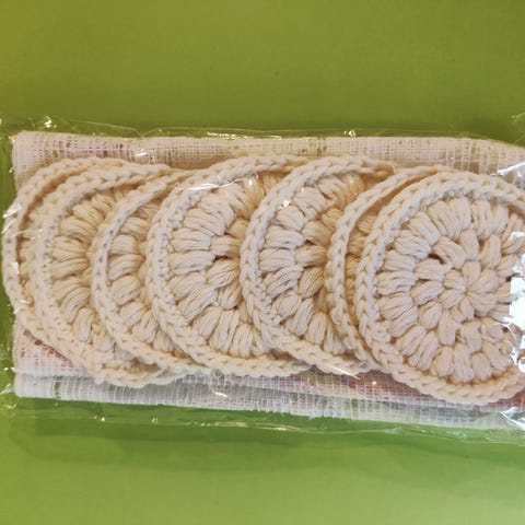 Ekologiset vanulaput, tehty 100% puuvillalangasta, uudet, 7kpl. Mukana kierrätysmateriaalista tehty pusupussi.