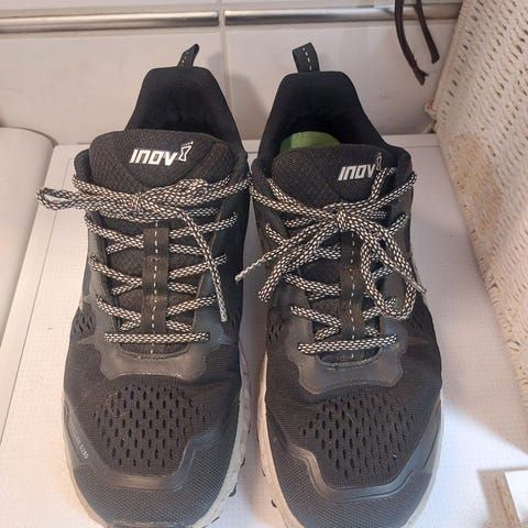 Koko EU 43 / 28 cm. Lenkkarit ovat kevyet ja joustavat, käytetty vähän. Sisäpuolen kangas on ehjä. Yleisilmeeltään siistit, vain vähäisiä käytön jälkiä. Ne ovat olleet pitkään käyttämättöminä kaapissa. Tätä alkuperäistä mallia ei enää valmisteta – se on suosittu erityisesti polkujuoksijoiden ja estejuoksijoiden (OCR) keskuudessa. Alkuperäinen laatikko ei ole säilynyt.