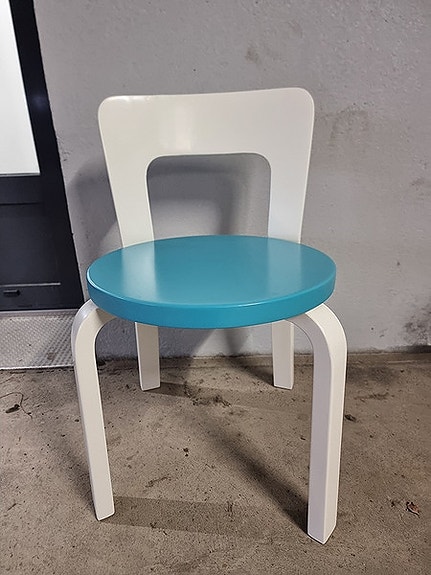 Artek 81c saarni lastenpöytä tai sohvapöytä. Pöydässä on käytönjälkiä ja kulumaa. Lakkapinta halkeillut.