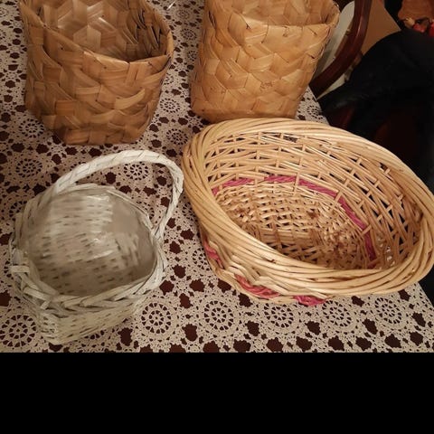 Myydään 3 kpl koreja kausi-istutuksiin/ sisustukseen. 2 punoskoria, 1 puinen kori. Kaikissa muovitettu sisäpuoli. Esimerkiksi syksyn/talven kausi-istutusten tekemiseen. Voidaan toki käyttää myös sisustuskoreina. Korien sisämitat n. 17-23 cm. Ehjät, puhtaat, aina lämpimissä sisätiloissa säilytetyt. Koko satsi 2 eur tai tarvittaessa myös yksittäin.