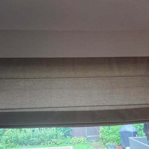 Solmittava verho kapeaan ikkunaan. Pinkki/valkoinen.