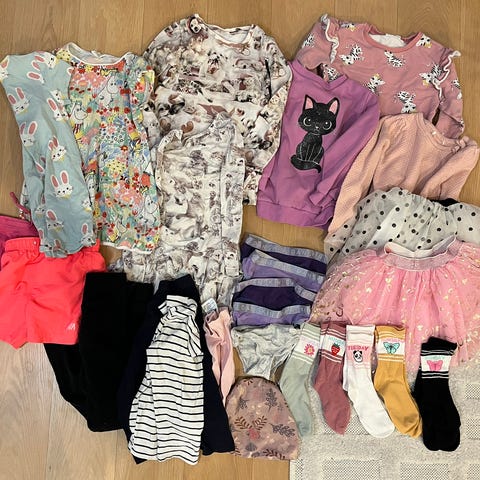 Tyttöjen vaatepaketti (Next, Bogi, Lindex..,), hyvässä kunnossa, koko 104-110 (Vaatteiden etikettien koot vaihtelevat, kokosin paketin oikeasta koosta).