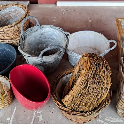 Suojaruukkuja sekä asetelmakoreja, erikokoisia. Osaava tekee vaikka jouluasetelmia. Kaikki kuvassa myydään kerralla.