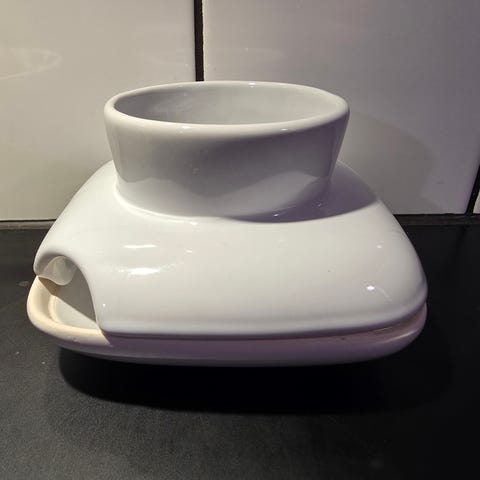 Kuvassa on Sagaformin Elise-yrttiruukku. Se on lasitettua keramiikkaa ja siinä on pohjassa reikä, jonka ansiosta vesi pääsee valumaan aluslautaselle.