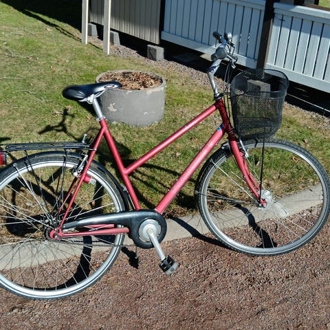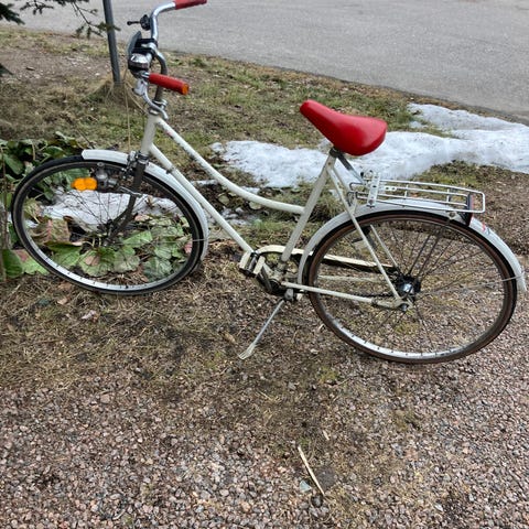 Punavalkoinen Titan Daisy merkkinen pyörä. Kolme vaihdetta. Uusi eturengas. Toimiva peli.