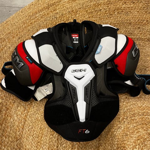 CCM RBE Pro jääkiekon hartiasuojat, musta ja punainen väri. Suojat on suunniteltu jääkiekkopelaamiseen ja tarjoavat suojaa hartioille ja rintakehälle.
