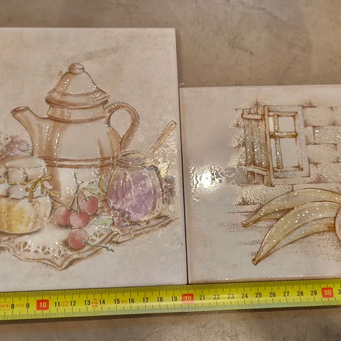 Säljer ett set begagnade keramiska kakel i gott skick – perfekta för små renoveringsprojekt, mosaik eller hantverk.