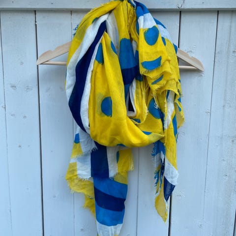 Myydään lämpöinen huivi. Leveät raidat/ruudut. Väri syksyisen maanläheinen.