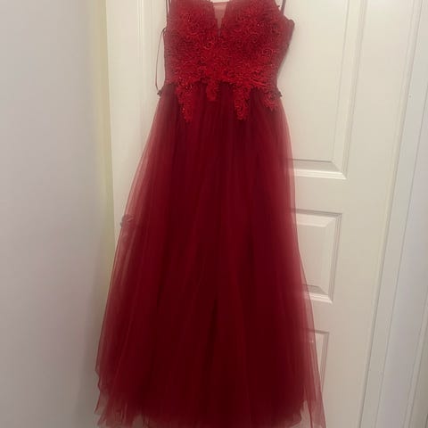 Harmaa, yhdet vanhat tanssittu vanhojen koko M. Mekossa on koristeellinen yläosa ja pitkä, laskeutuva helma. Materiaali sisältää kerroksittain ohutta kangasta, joka antaa mekolle ilmavan ja elegantin ulkonäön.