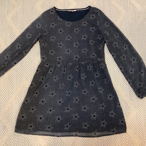 Hyväkuntoinen tunika. Piilohalkio, pituus juuri vähän polven yläpuolelle. 3/4 hihat. Vuori ja piilonepparit edessä. Väri on hento vaaleanpunainen, ehkä vähän roosaan vivahtava.