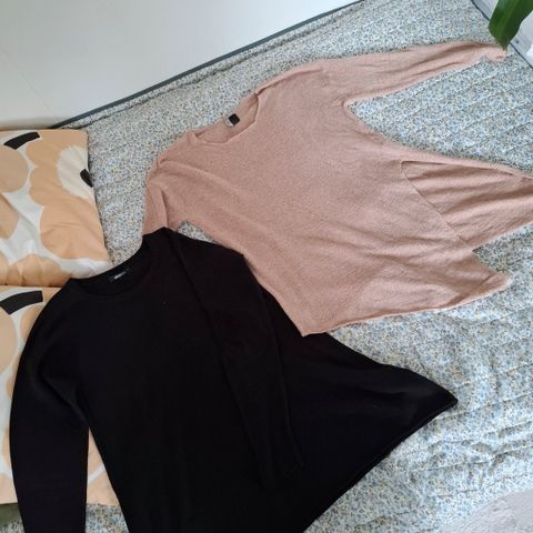Myynnissä kaksi neuletta. Sininen pilvikuvioinen kokoa 170cm, mutta ollut M-kokoisella käytössä, hinta 4€ (Lindex). Neuleen pinta joistakin kohtaa nukkaantunut, muuten kunto hyvä. Monivärinen, kokoa M, hinta 8€ (Soyaconcept). Molemmat yhteensä 10€. Nouto Pakilasta.