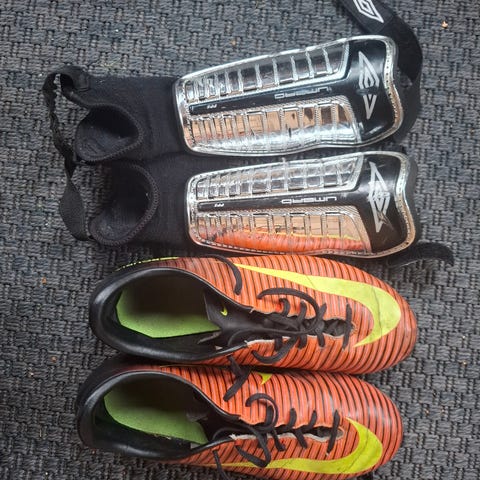 Kuin uudet puman 34 koon nappulakengät, s koon puman säärisuojat ja umbron 31-33 sukat