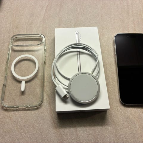 Mukana alkuperäinen latausjohto ja Apple-suojakuori (ostettu samasta paikasta).