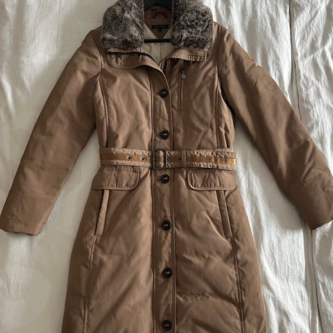 Myynnissä erittäin hyväkuntoinen Tommy Hilfiger -untuvatakki, jossa on irrotettava tekoturkishuppu. Tyylikäs musta takki, jossa on tikattu kuviointi ja merkin logo hihassa. Takissa on vetoketjukiinnitys sekä kaksi vetoketjullista sivutaskua. Pituus noin 115 cm, joten se suojaa hyvin kylmältä ja sopii täydellisesti talvikäyttöön.
