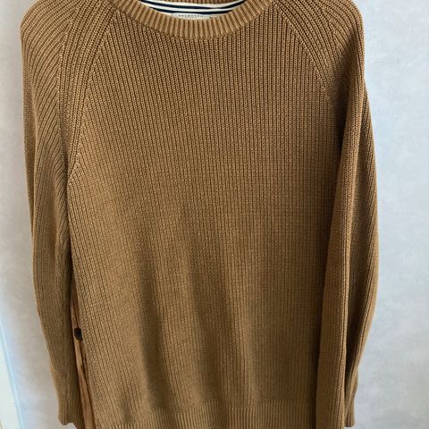 Myydään Selectedin laadukas ja lämmin paksu neule, jossa on tyylikäs shaalikaulus. Väri on syvä ruskea, joka sopii täydellisesti syksyyn ja talveen.