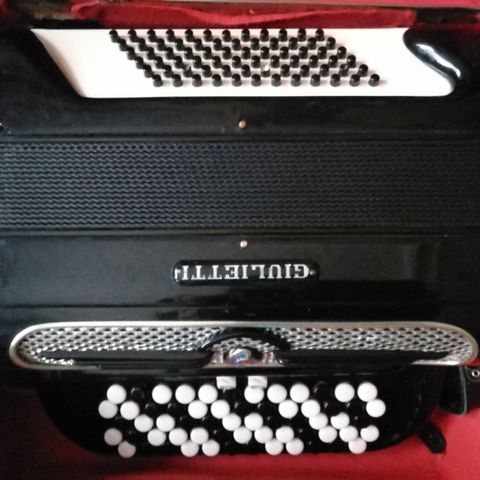 Kunto: Harmonikka on täydellisessä kunnossa ja vaikea löytää minkäänlaista käytönjälkeä, mutta olkaimet ovat huonossa kunnossa, joten niistä ei veloiteta. :) (Olkaimet siis toimivat, mutta kangas on lähtenyt purkautumaan)