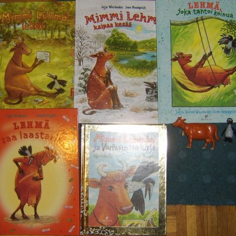 Yksi lukukirja: Mimmi Lehmä kiipeää puuhun, kuvalliset: M L ja Varis retkeilevät, Lehmä, joka tahtoi keinua, Lehmä saa laastarin, Lehmä Kelkkamäessä, Lehmä liukumäessä, Mimmi Lehmää lukee, Mimmi Lehmä on surullinen. Kirjat ovat kovakantisia ja erittäin hyväkuntoisia.