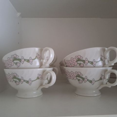 Vintage, hyväkuntoinen kultauksineen. Lautasen h. noin 16,5 cm, kupin n. 10 cm.