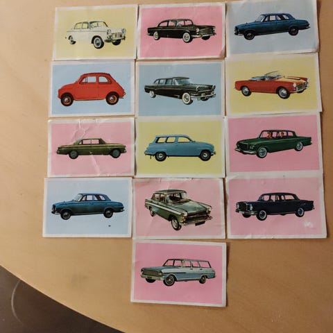 Vanhojen autojen kuvia Ipnoksen vohveli pakkauksista 9 kpl 20+ postitus 2,70