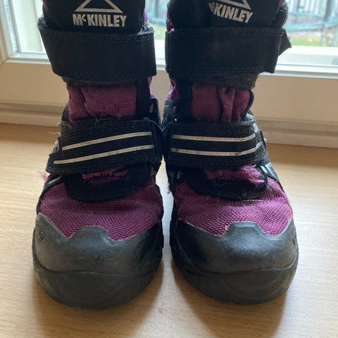 McKinley Lasten talvikengät, koko 28. Väri sininen. Materiaali on vedenpitävä ja kengässä lämmin vuori, joka soveltuu kylmiin olosuhteisiin. Kengissä on tukeva pohja ja ne suljetaan tarranauhalla sekä nauhoilla. Kengän kärjissä pieniä käytön jälkiä.