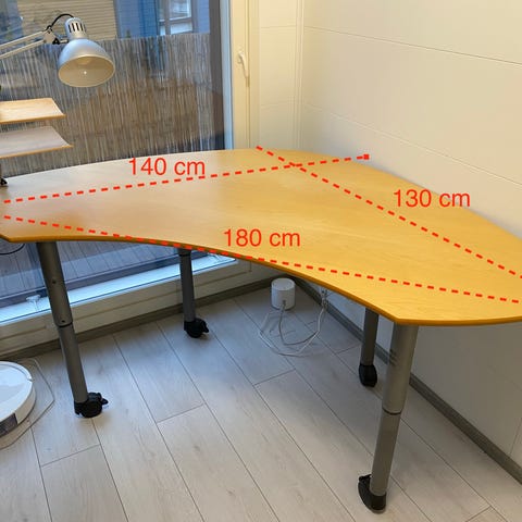 Really strong desk for sale. Height adjustable for standing or sitting. On lockable wheels to adjust position. Gas spring level to adjust height. Has a few light scuffs on the side but very minor and nothing on top.