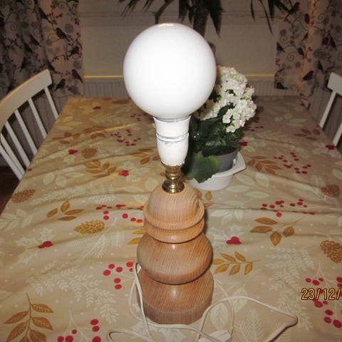 Myydään toimiva valaisin, jossa kynäteline tai mikä lie kuppi. Itselläni ei oo ollut tarvetta, lähinnä koristeena seissyt.