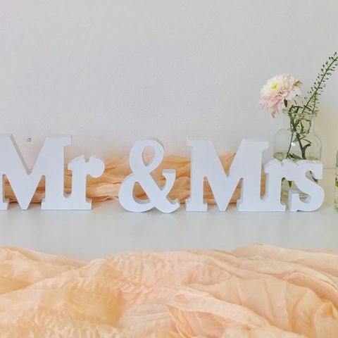 Myydään erittäin hyväkuntoiset valkoiset Mr & Mrs puukyltit alkuperäisessä pakkauksessa. Korkeus n. 9,5cm, leveys välit huomioiden kokonaisuudessaan n. 50cm.