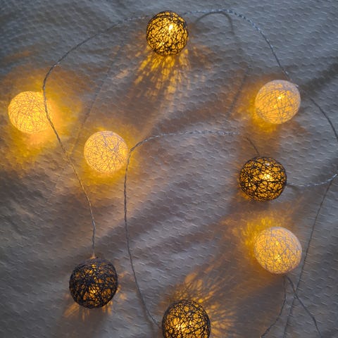 Jokaisen pallon sisällä lämpimän valkoinen led.