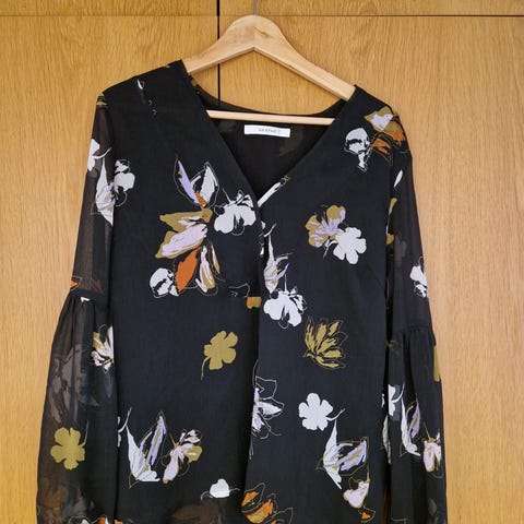 Gestuz farkku paitis. Ihanan löpsähtävää puuvillaa. Koko S. Sopii isommankin kokoiselle henkilölle. Reilun kokoinen malli. Painonapit. Sivuissa pienet halkiot. Väri kaunis luunvaalea.