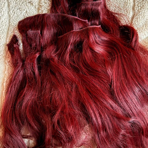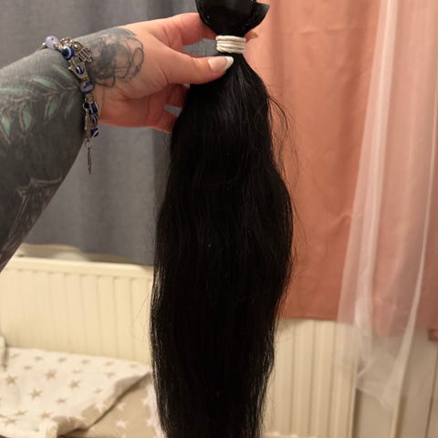PASTELL. TAPE ON teippipidennykset. Aitoa hiusta. Vain kaksi huoltoväliä olleet. Alunperin 30cm. Lyhennettyjä. Nyt n. 25 cm. Olleet apuna hiustenkasvatusprosessissa. Näitä 2 punttia yhteensä. Mukana puolipulloa teippipidennysten poistoainetta ja teippirulla.