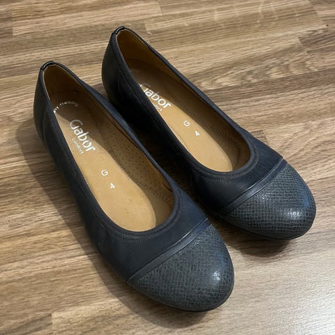 Gabor pehmeät ballerinat kokoa 5,5,eli 38,5,koko on reilu tai jopa 39,minulle on vähän isot kun mulla on 38. Kiiltävät,nahkaiset. Gabor laatua. Tori-diili