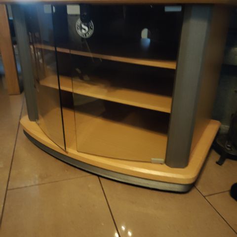 Itse tehty tv-taso, vaikka makuuhuoneen seinälle. Tukeva ja metallinen runko, päällinen puuta.