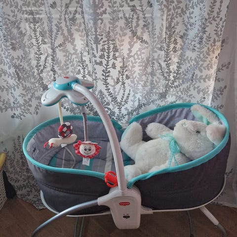 🤍 Mukana irroitettava mobile josta tulee valo ja erilaisia ääniä/musiikkia, kehdossa myös tärinäominaisuus