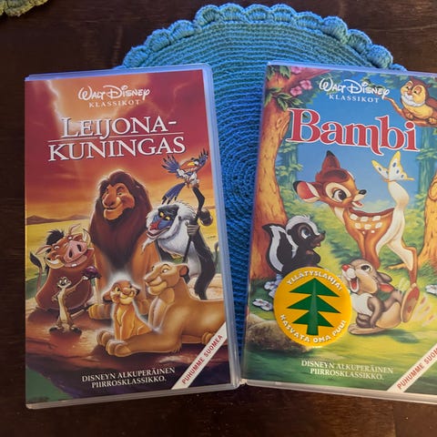 Walt Disney Leijonakuningas VHS-kasetti, juhlajulkaisu, suomenkielinen. Ei ole enää vhs-laitetta, mutta pitäisi olla ok.
