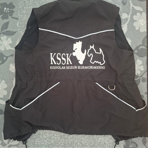 Lappalaiskoiratliivit koot S ja L, musta fleesivuori povitaskulla,sivuissa vetoketjutaskut,helmassa nyöri.