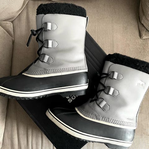 Hyväkuntoiset harmaat Sorel Caribou talvikengät. Lämpimät ja vedenpitävät. Koko 39.