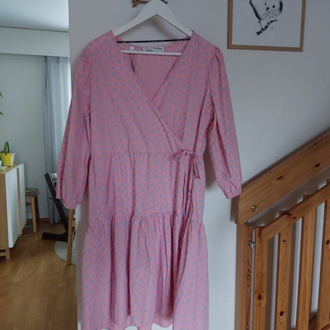 Materiaalina sisältää 5% elastaania ja muita kuituja. On ollut kaapissa vuosia, käytetty pari kertaa. Pesulakäynti on hyväksi.