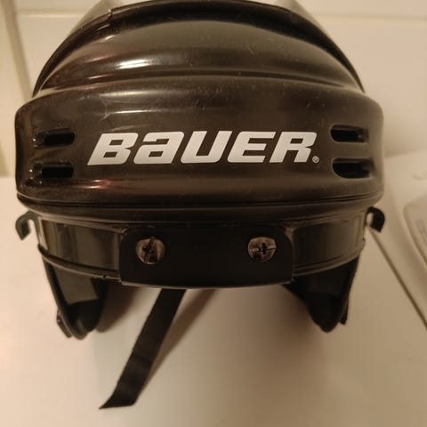 Bauer Jääkiekko Kypärä, koko M, musta väri. Kypärä on suunniteltu jääkiekkoiluun ja tarjoaa suojaa pelaajalle. Varustettu Bauer 3000 ritilällä kasvojen suojaamiseksi.